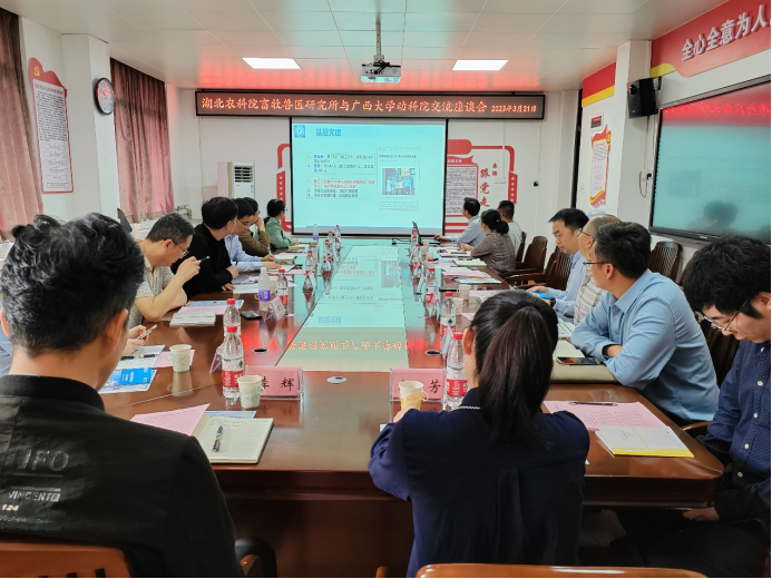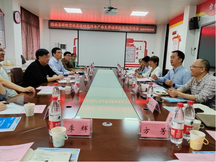 3月22日上午,湖北省农业科学院畜牧兽医研究所党委书记吴恢研究员一行六人来访,在beat365官方网站302会议室与公司领导及教师开展团队建设、成果转化和科研平台建设经验座谈交流。座谈交流会由公司党委书记顾慕娴主持,公司经理陆阳清教授、副经理何家康教授和副经理韦祖樟教授、动物科学系和动物医学系的主任及副主任等十多位老师参加了座谈会。