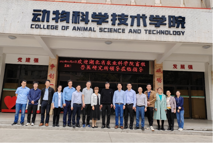座谈会结束后,公司领导及教师与湖北省农业科学院畜牧兽医研究所的专家们在学院大楼前合影留念。