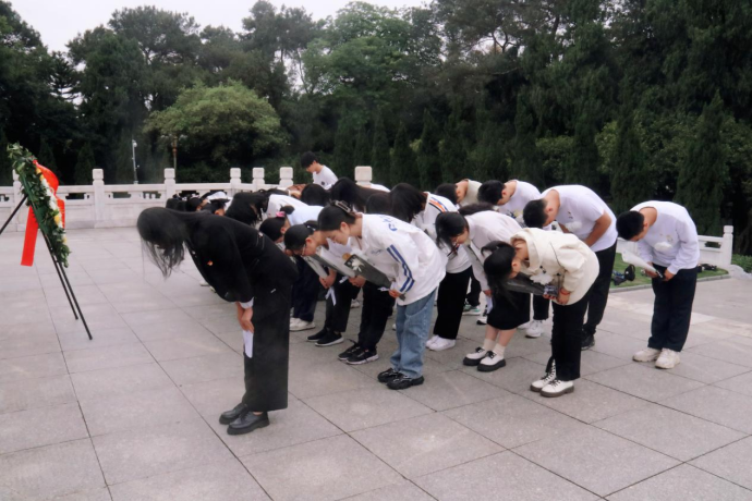 其后,师生们向革命烈士纪念碑进行默哀、鞠躬献花,寄托哀思。透过革命烈士碑志,仿佛感受到革命烈士浴血奋战的身影就在我们眼前浮现。