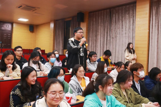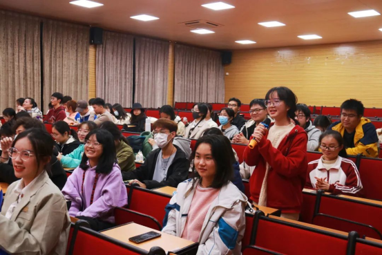 观影过程中,同学们穿插进行了三轮知识竞答,题目紧紧围绕党史、新中国史、改革开放史、社会主义发展史主题学习教育要求,涉及政治、经济、科技等各个领域,包括选择、音乐、影视三种题型。大家精神饱满、踊跃作答,现场气氛紧张而热烈。