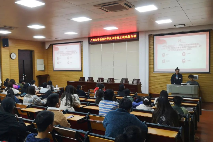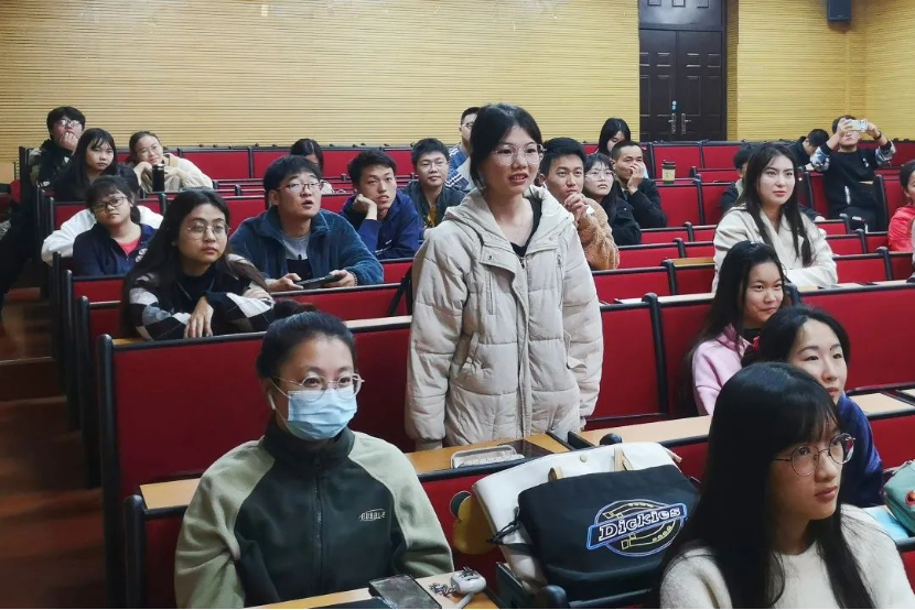 观影过程中,同学们穿插进行了三轮知识竞答,题目紧紧围绕“党史、新中国史、改革开放史、社会主义发展史”主题学习教育要求,涉及政治、经济、文化、科技等各个领域。大家精神饱满、踊跃作答,现场气氛紧张而热烈。